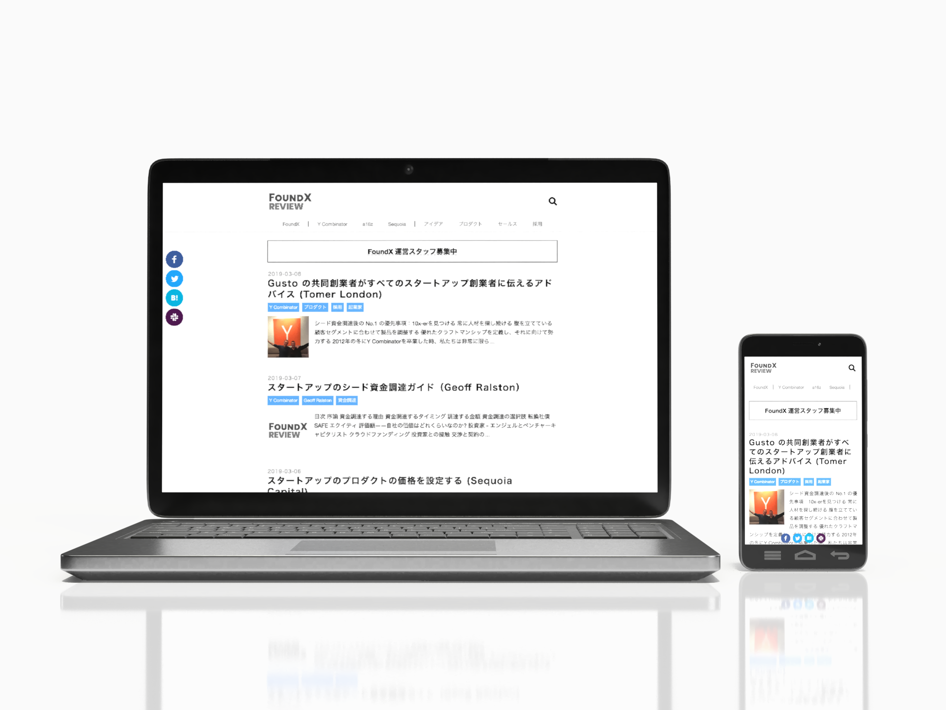 スタートアップ企業向けの情報を発信する東大発メディアFoundX Reviewのデザインおよび実装を担当しました。